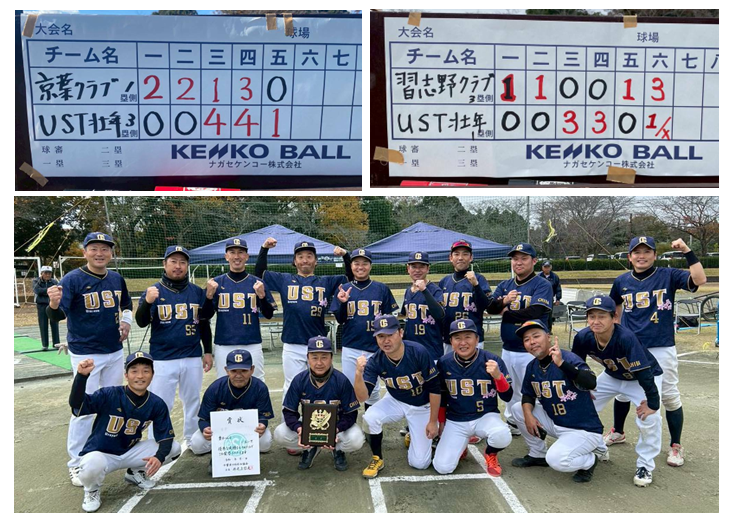 第2回千葉県壮年ソフトボール選手権大会でUST壮年が優勝しました。 <監督コメント> 2試合とも先制され苦しい展開でしたが全員一丸となり粘り強く反撃し劇的な連続サヨナラ勝ちでチーム結成後初めてのタイトルを獲得することができました。皆様からの日頃ご支援に感謝申し上げます。 <試合結果> UST壮年 9×ー8 京葉クラブ UST壮年 7×-6 習志野壮年